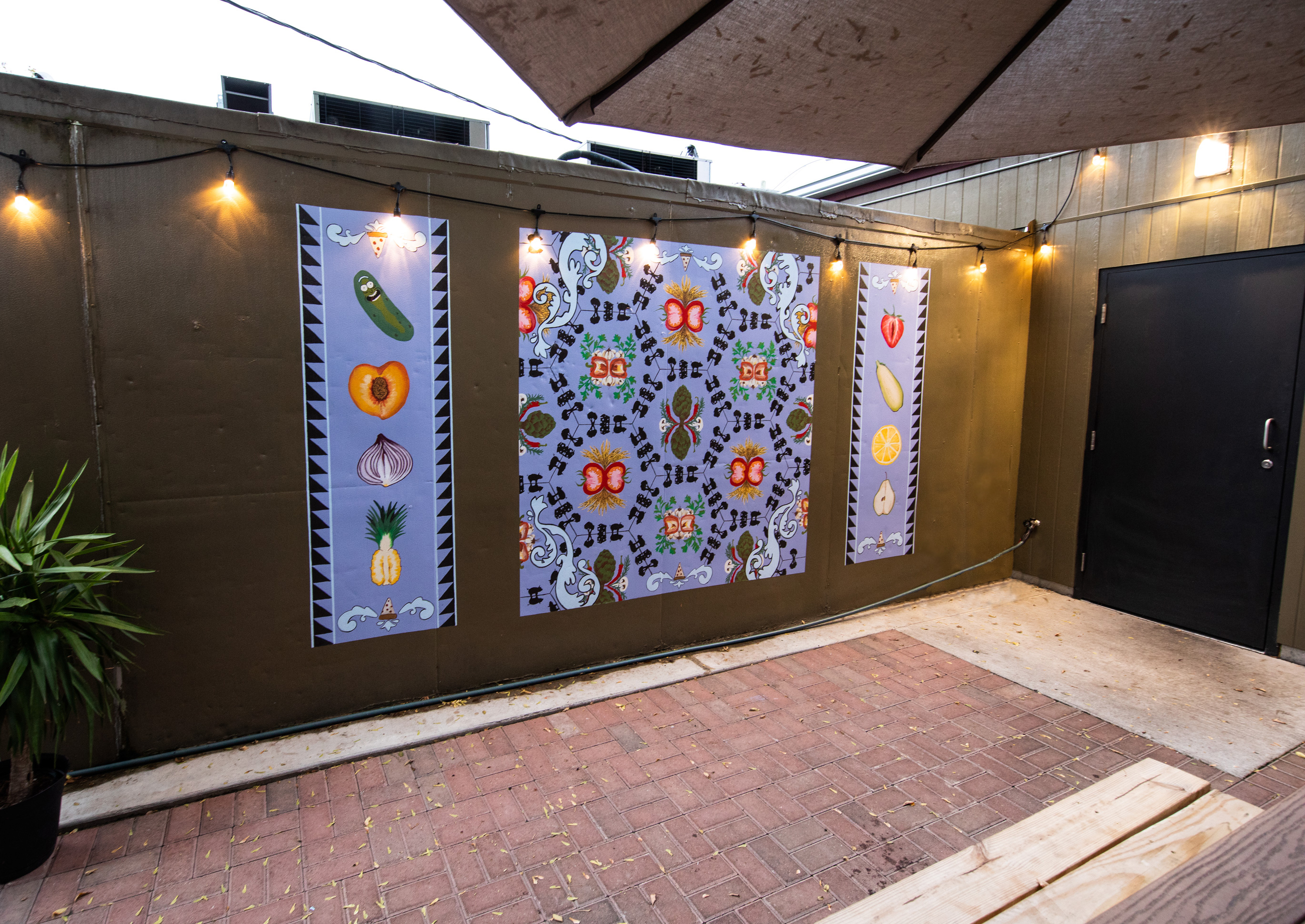 5D4_9826 Previous Published October 8, 2018 at 2745 × 1944 in Paintings Mural on back patio of Pie Sci, Detroit, Michigan – 15′ x 7′ Acrylic latex