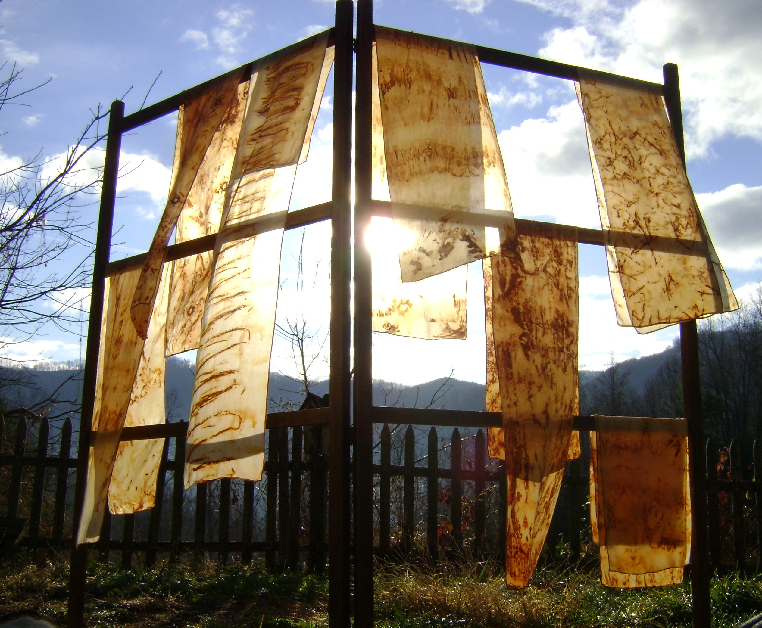 Lewis_Rust Dyed Scarves_2012_Silk & Rust Previous Next Published August 30, 2018 at 2530 × 2086 in Textiles Rust Dyed Silk Scarves – 8″ x 48″