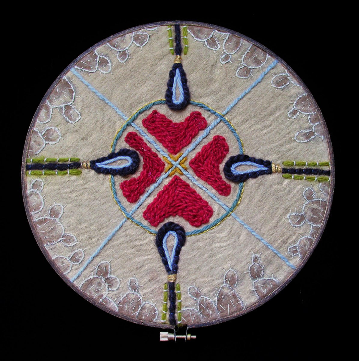 Zia Sun Tribute Previous Next Published August 30, 2018 at 1200 × 1205 in Textiles Zia Tribute – Cotton and wool dyed with natural dyes – Diameter 12″